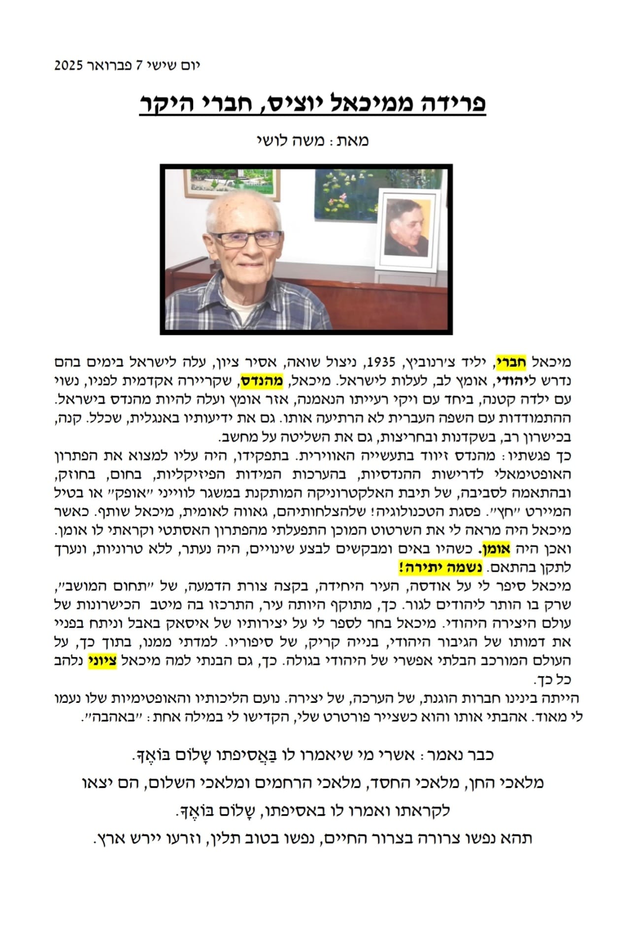 מיכאל יוציס – פרידה מחבר