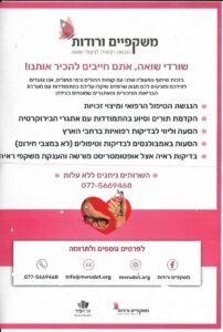 תל אביב ומרכז: דלית אשורי 052-8333849 ירושלים וסביבה: שרית אנג'ל 050-5501237