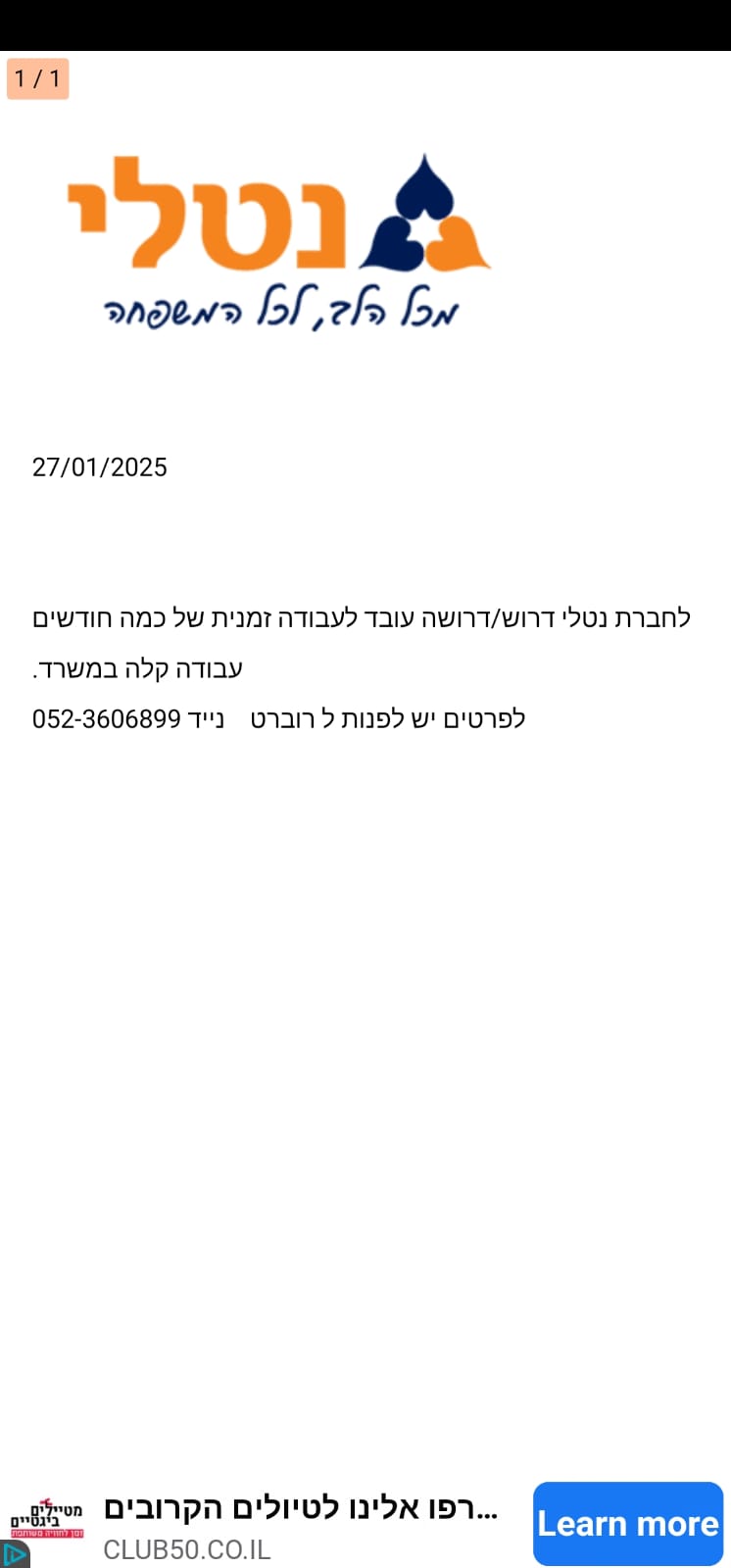 תעסוקה ב"נטלי" ראו כאן
