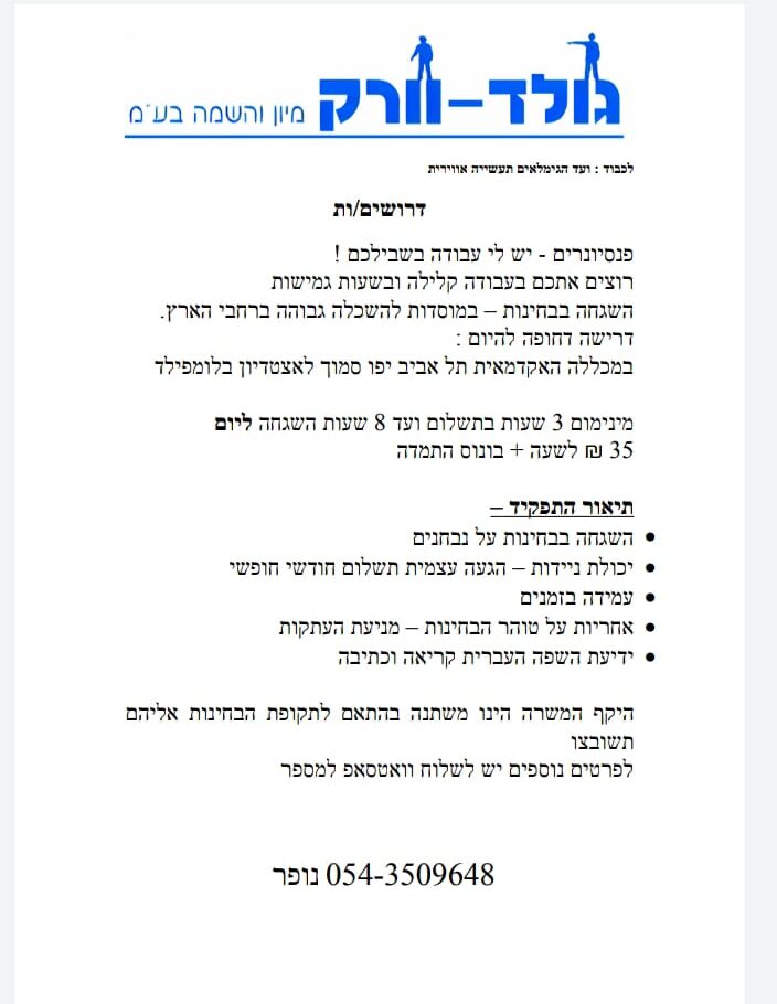 *לגמלאים המעוניינים בעבודה חלקית!